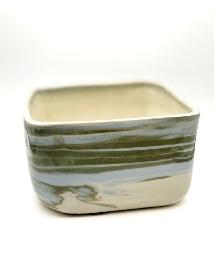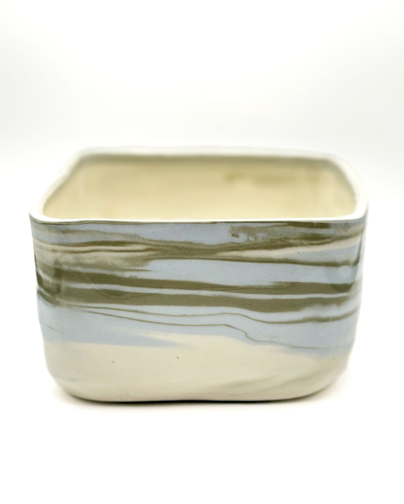Seaweed Marbled Porcelain Square Bowl (M)